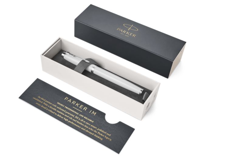 Ручка роллер Parker IM Metal White CT от официального дилера Parker в Туле. Вы можете дополнительно заказать гравировку, которая подчеркнет Вашу оригинальность и придаст памятность статусному подарку. Все ручки Паркер поставляются в фирменном футляре.